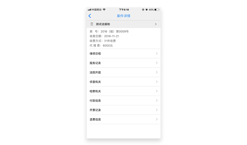 可以查看律師日程安排、服務(wù)記錄、法院開庭等……